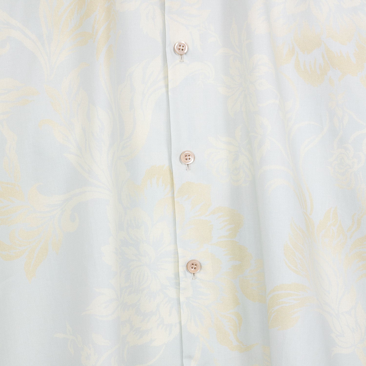 The shirt is part of the men’s collection. It is made from cotton with a subtle shine on the surface. The shirt has an oversized fit and features all over print, front buttoning, buttoned cuffs and curved hem.