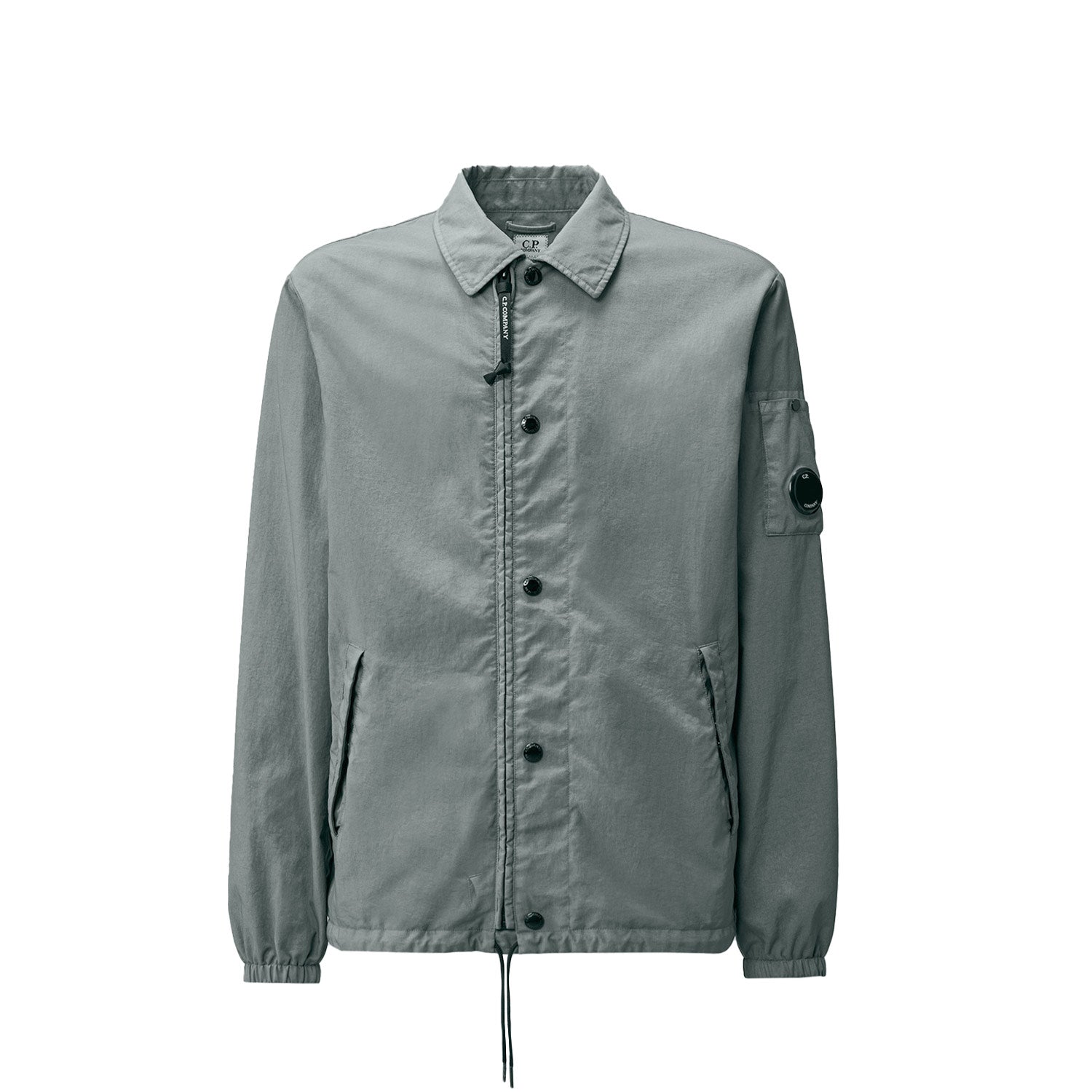 The overshirt is made from polyamide and cut to a regular fit. It features double fastening, both zipper and snap button closure, pockets at sides, adjustable hem and lens detail at the arm.