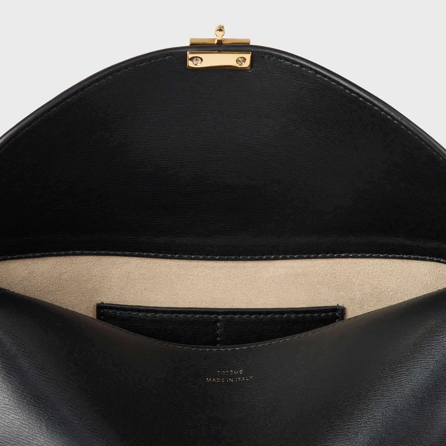 TOTEME T-LOCK LEATHER CLUTCH, Black