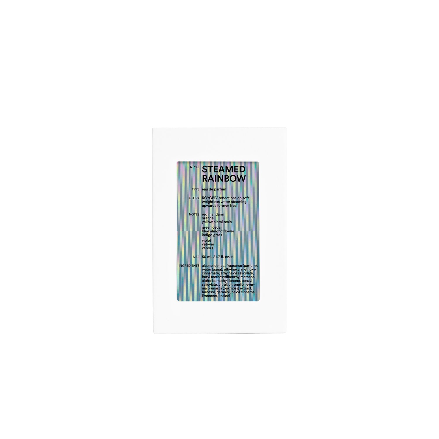 Top Notes : Red mandarin/Orange/Yellow elemi resin Heart Notes : Green cedar/Blue almond flower/Indigo grass Base Notes : Violet/Vetyver/Vapors